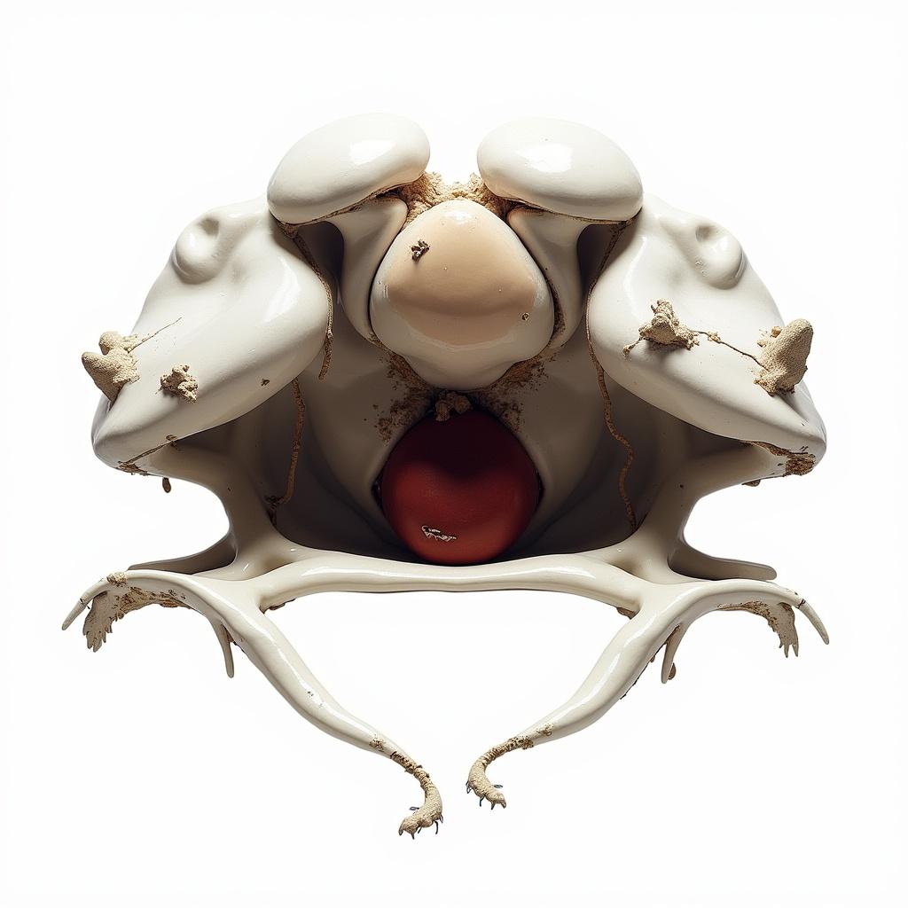 A: The corporeal qualities are indeed intentional, though they are simultaneously emergent rather than explicitly planned. They resonate with what Merleau-Ponty describes as the “incarnate significance” of form—where the perceptual and physical intertwine. My algorithms utilize synthetic erosion, stress fields, and topological deformation, naturally giving rise to voids and protrusions reminiscent of biological morphogenesis.